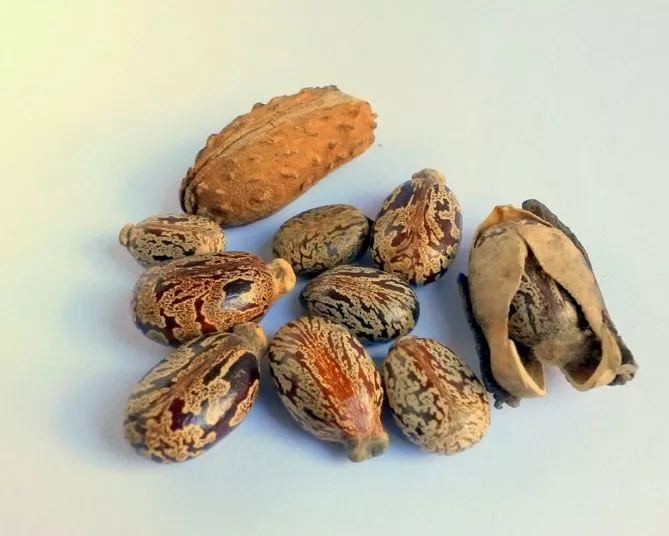 Рослина називається клещевиною через схожість насінин із роздутим кліщем.