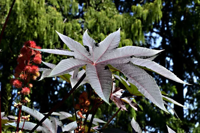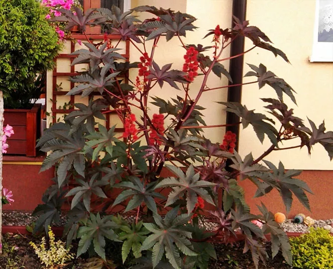 Колись популярна у садах клещевина сьогодні рідко з'являється на клумбах, хоча її декоративні якості давно відомі. Однак рослина дуже отруйна, тому її не варто вирощувати в садах, де гуляють маленькі діти. Ми розповімо, як виростити клещевину – про посадку та догляд у відкритому грунті, покажемо фото цікавих сортів.
