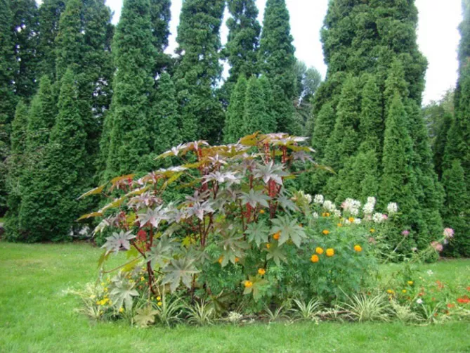Гарно виглядає клещевина в композиціях з: