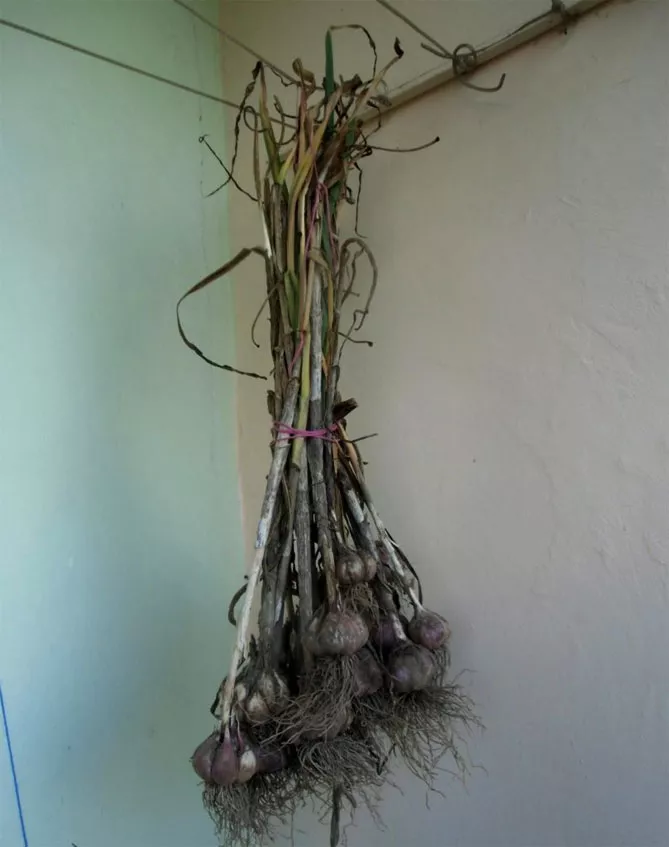 Часник пора прибирати на зберігання, коли головки після викопування покриті 3-5 лусочками. Коли збір урожаю затримується, лусочки розтріскуються, і головки починають відкриватися, урожай гине.