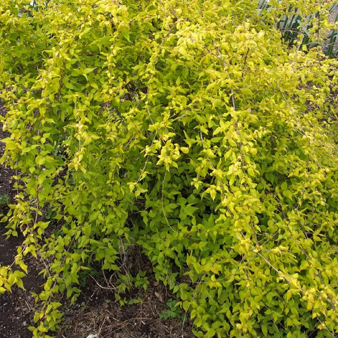 - Листя – маленьке, яйцеподібне, загострене, восени опадає, зелене, розташоване супротивно, має довжину 2-3,5 см. Восени вони іноді набувають красивого пурпурно-золотистого кольору. Сорт «Марадко» Maradco, іноді помилково званий Aurea, має м'яку охристо-жовту листву.