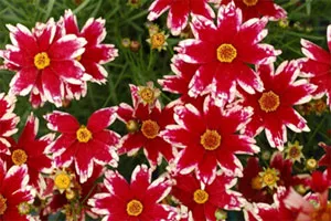 | Рубі фрост (coreopsis ruby frost) | Кореопсис Рубі фрост дуже декоративний – з красивими квітками алого кольору з білою облямівкою і жовтою серединкою. | ![]() |