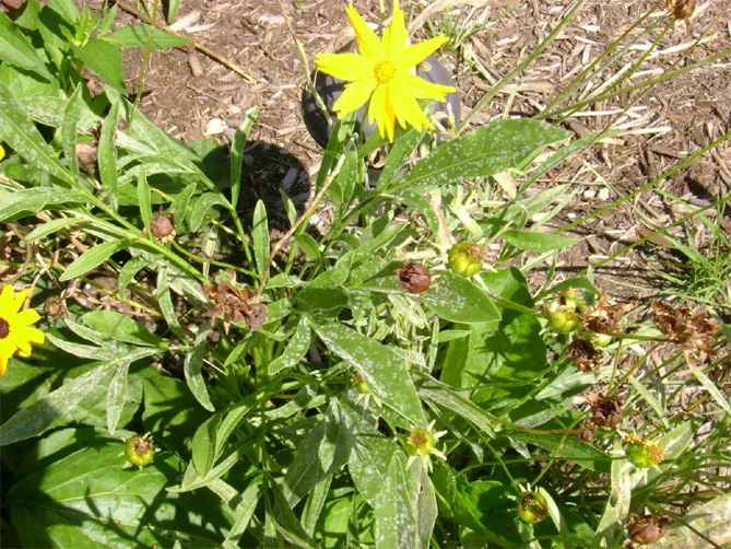 - Ланцетовидний (Coreopsis lanceolata) – багаторічник, цвіте одиночними, яскраво-жовтими кошиками діаметром 6 см і квітками, обрізаними по краях. Листя яскраво-зелені, ланцетні, довжиною 15 см, утворюють розетку. Висота і ширина 55×40 см. Різновиди цього виду: