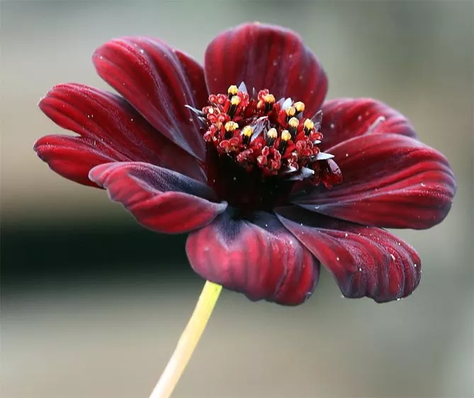 Багаторічна космея криваво-червона (C. atrosanguineus) також звана – шоколадна і чорна, вирізняється кошиками суцвіть шоколадного кольору і запаху діаметром близько 3 см. Рослина виростає до 35 см, слабо розростається, утворює ланцетоподібні листки.