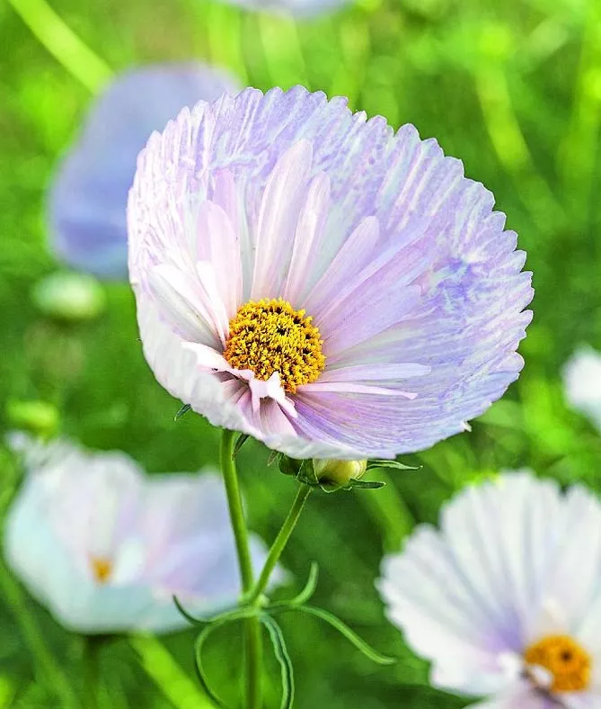 Космея двічіпериста (Bipinnatus) – однорічна рослина. Виростає до 1-1,5 метрів у висоту, потужно розростається і на верхівках численних стебел утворюються делікатні квіти діаметром 5-9 см. Висота дуже сильно залежить від позиції – у злегка затінених положеннях рослина не може вирости до 1,5 метрів.