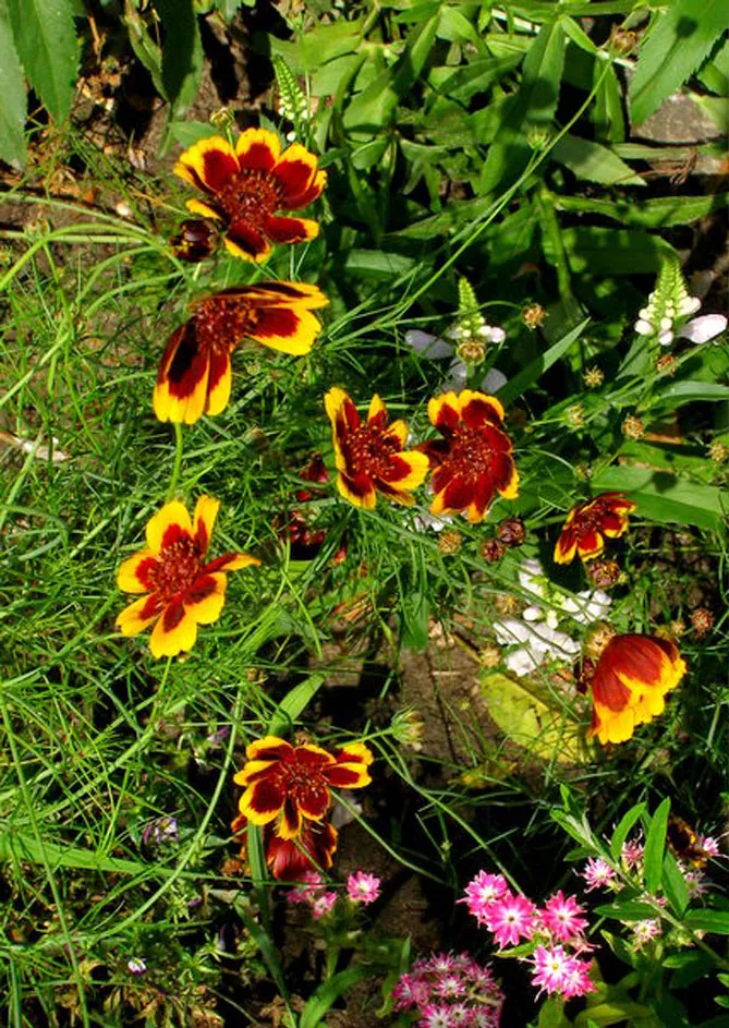 Зробіть ставку на теплоту і жвавість барв квітів космідіуму, щоб надати веселий характер літнім бордюрам, оточивши його: