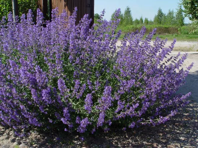 - Котяча м'ята сибірська (Nepeta sibirica) – вид з ароматним листям і пишними лавандовими квітами. Розміри 40 × 60 см. Сорт «Blue Beauty» цвіте синіми квітами.