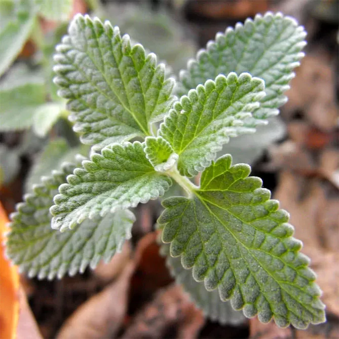 | Листя | Супротивне, зазвичай ароматичне, одиночне, за формою нагадує серце, з характерними зубчастими краями. |