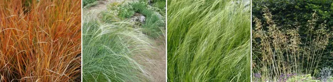 Фото. Види ковили: S. arundinacea, S. capillata, S. tenuifolia, S. gigantea