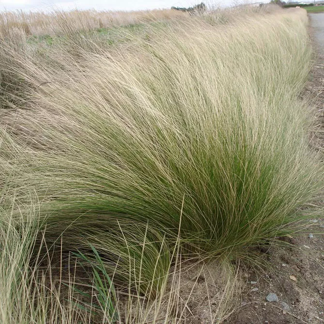 Ковила тончайша (Stipa tenuissima, синонім Stipa tenuifolia) – нетривала трав'яниста багаторічна рослина, яка росте невеликими групами дуже тонких циліндричних і лінійних листків зеленого кольору, що розширюються фонтаном. Через 2 роки після посіву має розміри 40-50 см у всіх напрямках. Влітку з'являються довгі суцвіття у м'яких і шовковистих волотях, блідо-русяві, що стають золотистими, а восени бронзовими, злегка зігнуті до землі.