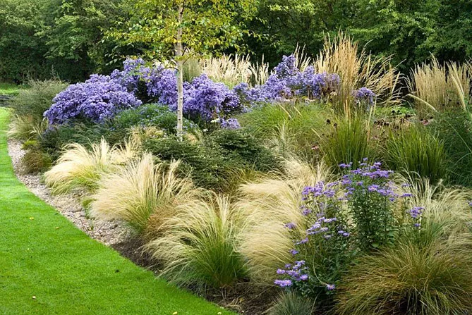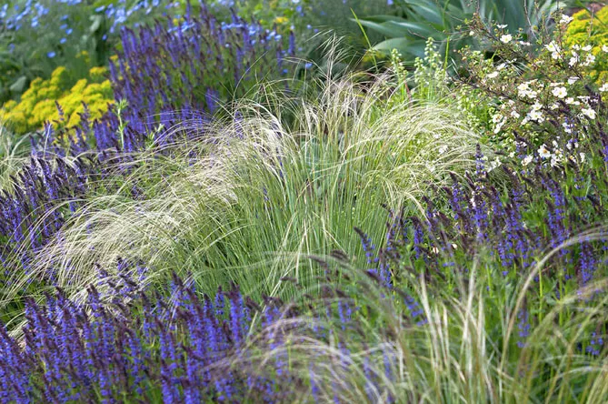 Щоб уникнути монотонності, комбінуйте ковилу з іншими рослинами в саду.