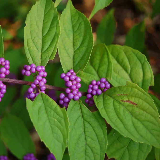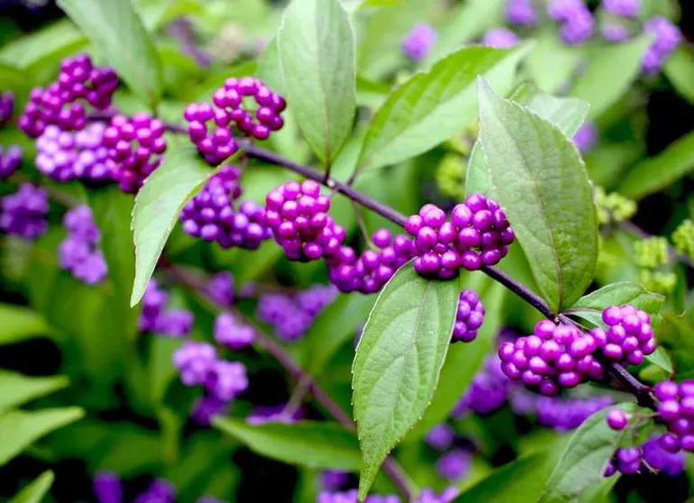 Фото. Листя та плоди Callicarpa Americana