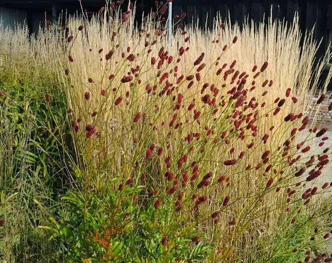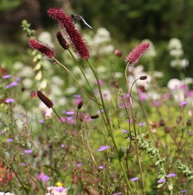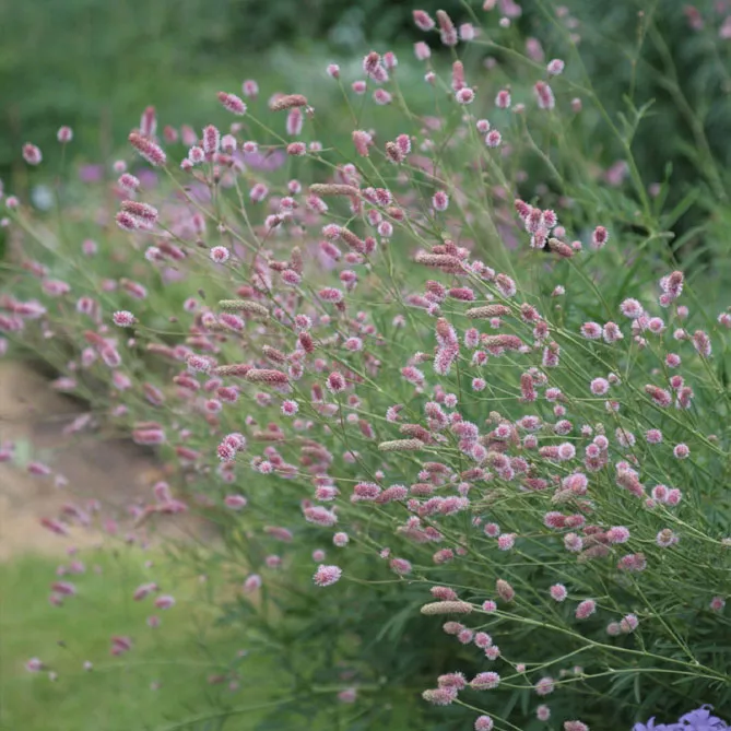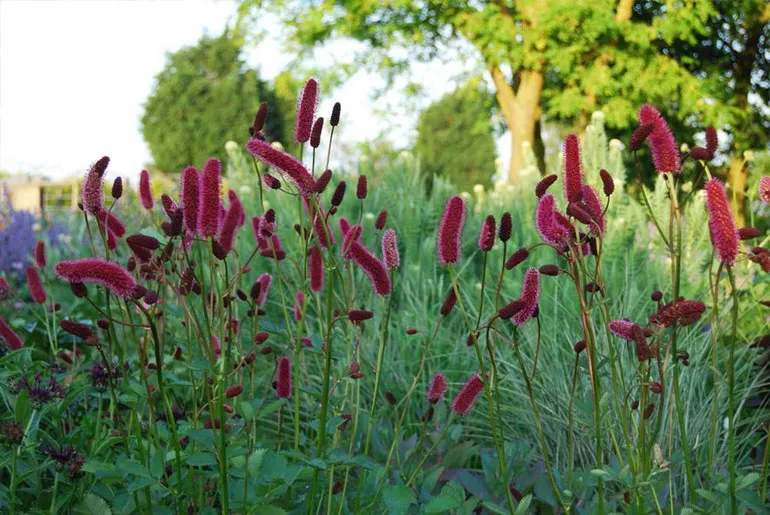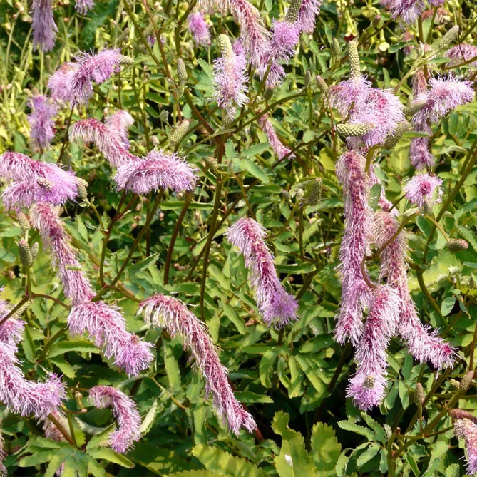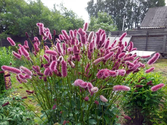 - Sanguisorba obtusa – К. тупа (зі схиленими, рожевими суцвіттями);