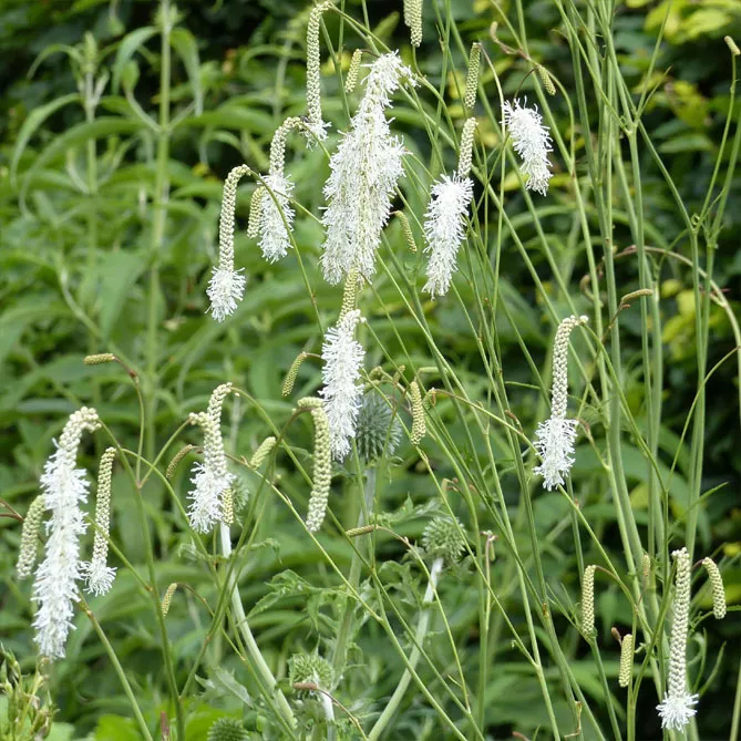 - Sanguisorba canadensis – К. канадська (чисто білі суцвіття);