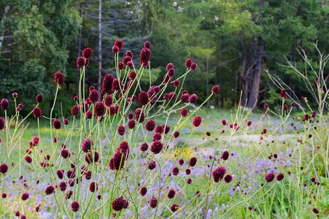 - Sanguisorba menziesii – К. Мензіса (темно-рожеві прямостоячі суцвіття).
