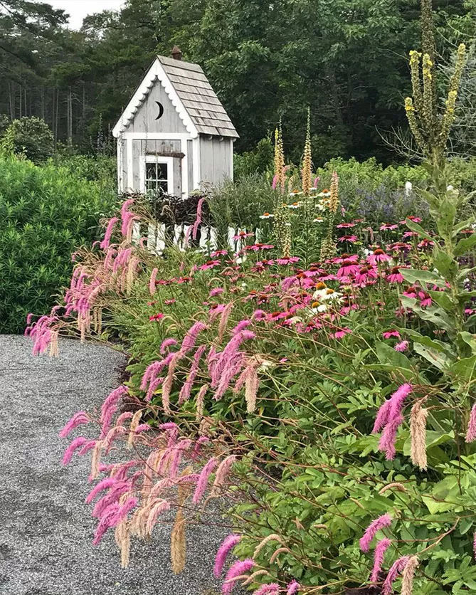 Щоб надати саду атмосферу квітучого лугу, можна комбінувати садову квітку кровохльобка з іншими дуже повітряними рослинами: