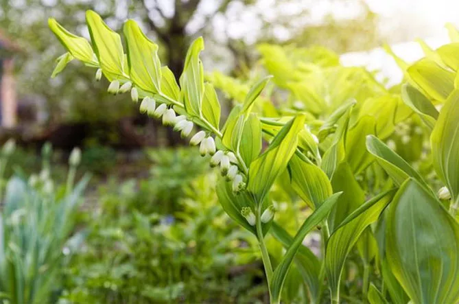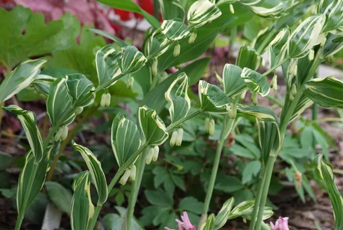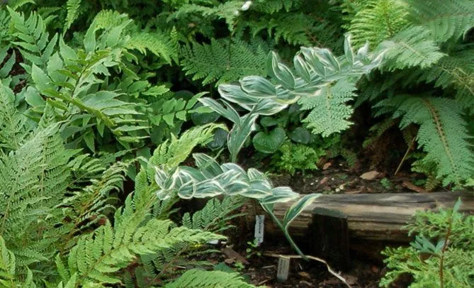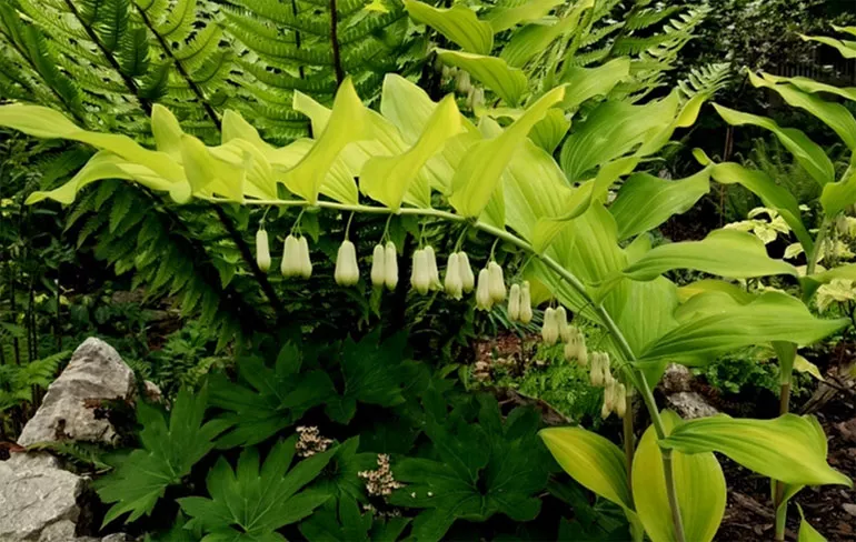 Купена добре росте в темних куточках саду поряд з іншими тіневитривалими рослинами: