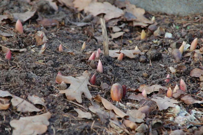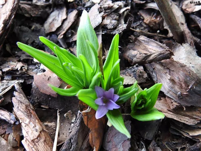 Сходи рослини з'являються у березні.