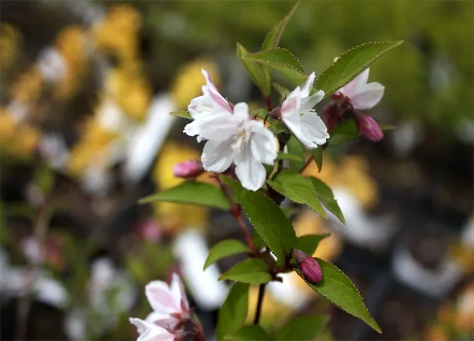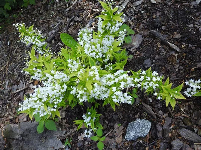 Дуже цікавий компактний сорт «Нікко» (Nikko), заввишки 40-50 см, з «соковитими», білими квітками, що з'являються в червні. Листя куща восени стає червоним.