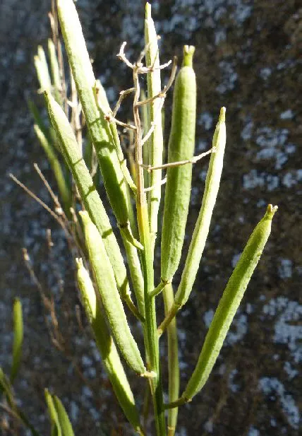 - Плід – після цвітіння утворюються стручки (характерні плоди родини Brassicaceae), що містять насіння. Стручки видовжені, вузькі, нагадують невеликі стручки квасолі.