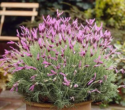 На додаток до лаванди вузьколистої для вирощування в горщиках ідеально підходить французька лаванда (стэхадская). Вона відрізняється від типової вузьколистої суцвіттями. На вершині колосків ростуть довгі пелюстки, чий відтінок може відрізнятися від відтінку квітів в нижній частині колоска. Кущ характеризується компактним ростом і невеликими розмірами (40-60 см в висоту), тому особливо рекомендується для вирощування в горщиках, контейнерах. Цвіте весною (травень-квітень), повторює цвітіння восени (вересень-жовтень). Рослина чутлива до заморозків і розглядається як однорічна, хоча іноді вдало зимує.