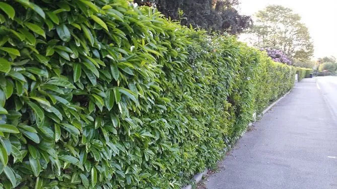 Фото. Жива огорожа з лавровишні в ландшафтному дизайні