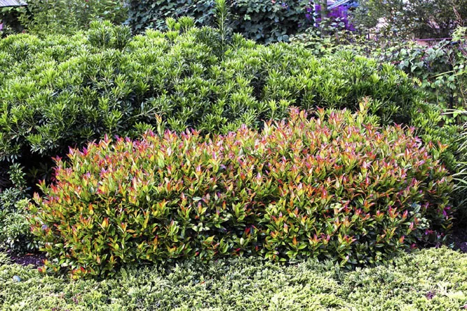 - Леукотое Дефонтена (лат. Leucothoe fontanesiana) – у багатьох різновидах («Скарлетта» Scarletta).