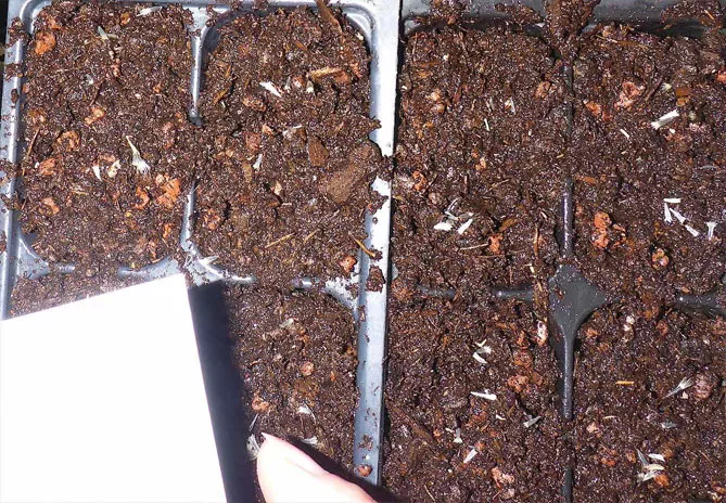 - Змішайте насіння з піском і горщиковою землею в контейнері, щоб можна було сіяти їх більш рівномірно.