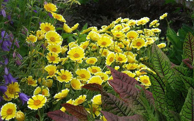 Якщо вам подобаються квіти типу айстр, вам особливо сподобається лея. Її великі двоколірні квіти привертають увагу і ефектно виглядають на клумбі, тому варто задуматися про те, щоб посадити її у своєму саду. Це дуже невибаглива рослина, що не потребує родючого субстрату і підживлень, найкраще росте на небагатому ґрунті, що не може не радувати власників міських садів.