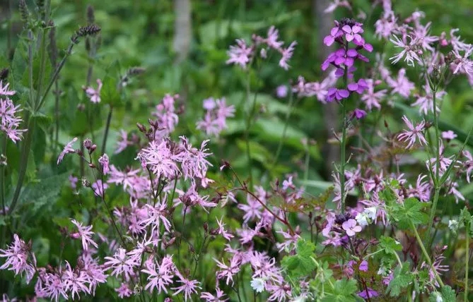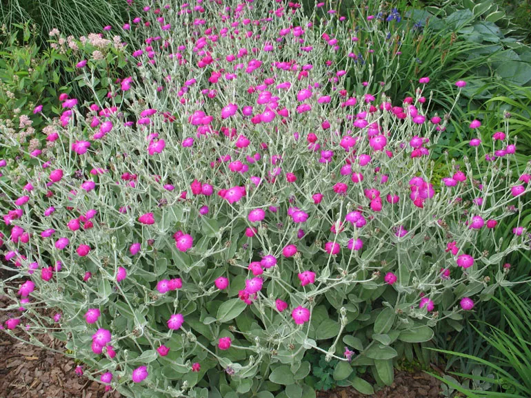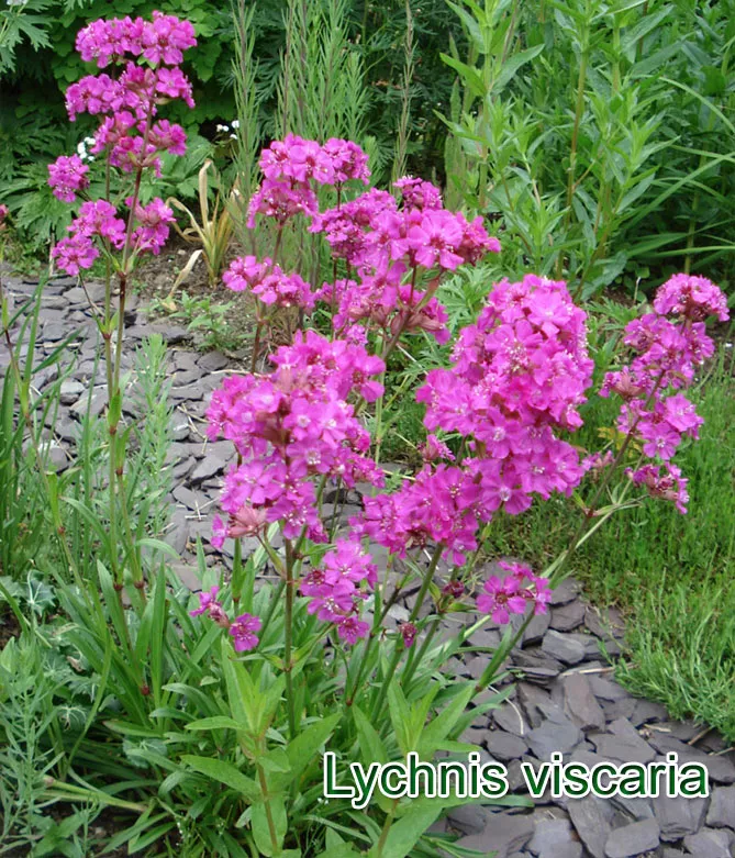 - Ліхніс вiскарія (Lychnis viscaria) з чарівними шаруватими, шелесткими квітками.