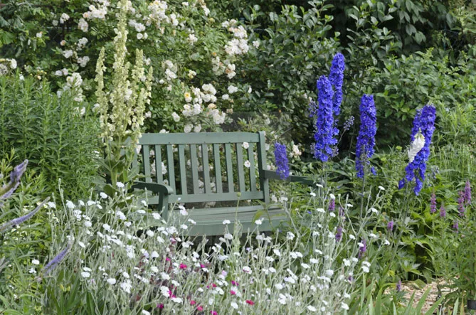 Срібляста оксамитова листка ліхнісу також знадобиться в саду в англійському стилі, щоб прикрасити підошву старих троянд, візуально підкреслюючи їх цвітіння. Для такої композиції відмінно підійде дуже романтичний ліхніс сорту «Енджелс Блаш» з ніжно-рожевими пелюстками, обрамленими білою каймою.