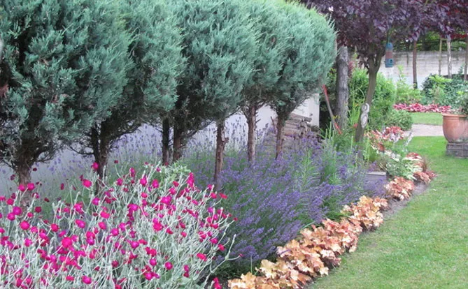 Щоб прикрасити краї алеї та надати їй рельєфність, можна посадити високий вербейник в обрамленні осліплююче пурпурних ліхнісів, або зробіть ставку на елегантне чергування квітів, поєднуючи пурпурні багатоколосники або вероніки з чистотою білого ліхнісу. Можна додати в таку композицію пупавку або космею для чарівного сільського вигляду.