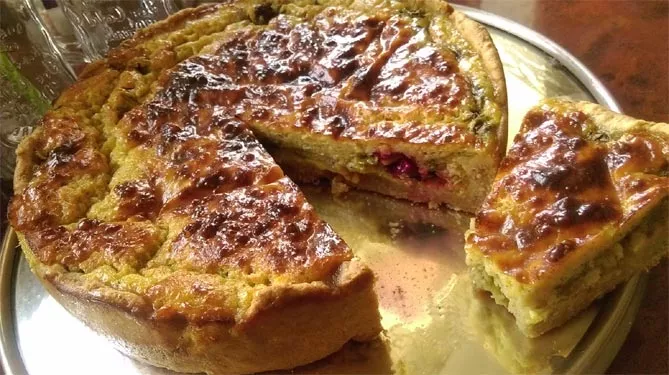 Сухі інгредієнти і суміш трав перемішуємо, додаємо яйце і молоко, щоб тісто мало консистенцію, схожу на тісто для оладок. Листя без черешків подрібнюють і змішують з тістом. Оладки смажать на сковороді в великій кількості рослинної олії до золотистого кольору.