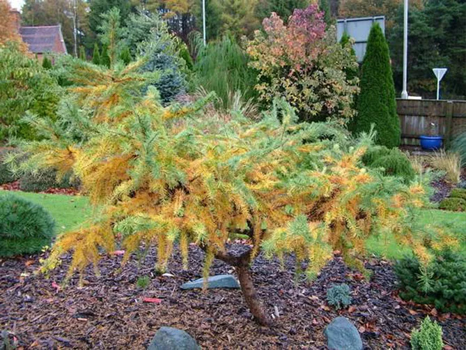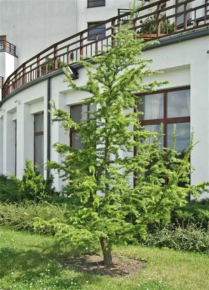 Вирощування модрини на штамбі не доставить проблем. Таке дерево більш стійке до посухи та легкої тіні. Воно повільно росте.