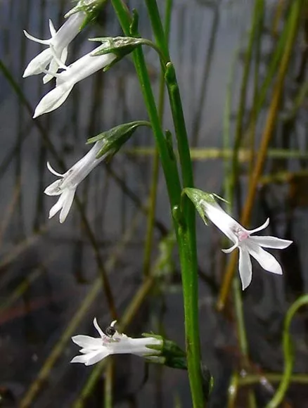 Лобелія Дортмана (Lobelia dortmanna) – зникаюча рослина, занесена до Червоної книги. У дикому вигляді багаторічник мешкає по берегах озер і річок, а також у водоймах на глибині 70-80 см. Після того як стебла рослини досягають межі водного покриву, починається цвітіння. Квіти лобелії Дортмана дзвоникоподібної форми білого, блакитного кольору.