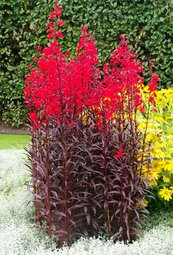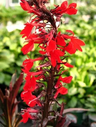Лобелія пурпурна (Lobelia cardinalis), також відома під назвою лобелія кардинальська. Ефектна різновидність рослини, що вирощується на вологих ділянках або по краях водойм. Висота пагонів – до 80-90 см. Колос суцвіття складається з пурпурних квітів. Лобелія кардиналіс вирощується в основному як садова, рідше – як акваріумна рослина. У дикому вигляді росте в Північній Америці. Ала лобелія не є повністю морозостійкою, взимку її слід укрити або перемістити в прохолодну і світлу кімнату. Цвіте з липня до перших заморозків.