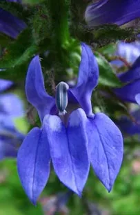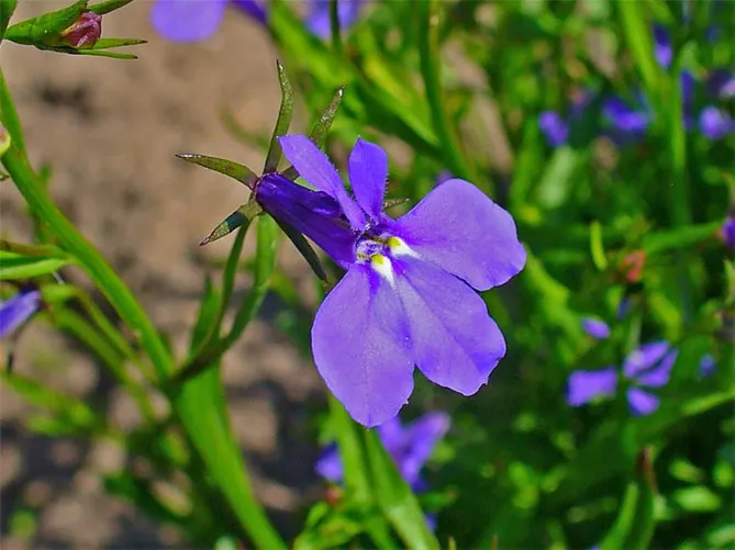 Лобелія синя (Lobelia erinus) або бордюрна – висока рослина родом з Америки, стебла прямостоячі, квітки блакитного кольору. Цікавий вид через великий розмір. Рослина досягає висоти 80 см. Синя лобелія розцвітає в кінці літа, повністю стійка до морозу. Підходить для зрізаної квітки.