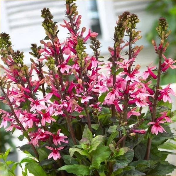 Лобелія прекрасна (Lobelia x speciosa) – красивий високий багаторічник, заввишки до 1 метра. Яскраві квіти великі – діаметром до 3 см. Рослина відноситься до зимостійких, але в холодних регіонах її вирощують в якості однорічної рослини або залишають на зиму під укриттям. В південних регіонах рослину залишають зимуючими без укриття.
