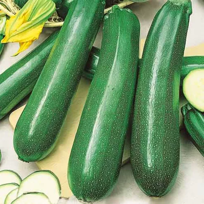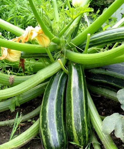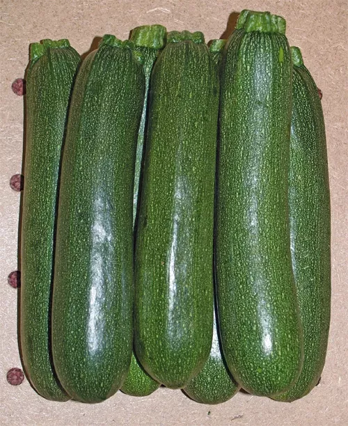 Яскравий представник кабачків - цукіні, що відрізняється неперевершеним смаком, ароматом. Під оболонкою плоду сховано ніжний вміст з незначною кількістю насіння. Покривна оболонка цукіні майже прозора, її не видаляють при тепловій обробці. В виключно смачних плодах містяться вітаміни різних груп, вуглеводи. Сорт швидко достигає, збір ведуть через місяць від посадки розсади. Без наслідків переносить скачки температур, на будь-яких типах ґрунтів показує відмінну продуктивність. Плід в середньому важить 600 г. Рослина приземкувата, не пагонові, має інтенсивно забарвлене зелене листя з потовщеними прожилками. Кабачки смугасті. |