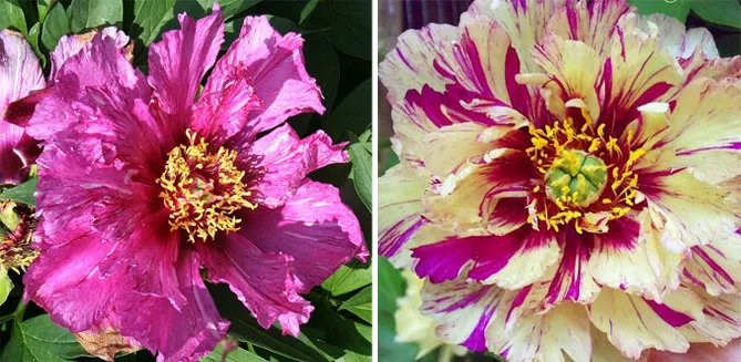 У більшості сортів деревовидних піонів бутони розкриваються раніше, ніж у трав'янистих. Однак цвітіння триває недовго – близько 3 тижнів. У зв'язку з уповільненим ростом, посадку та вирощування їх здійснюють за особливою технологією – шляхом щеплення живців на кореневище трав'янистих різновидів.