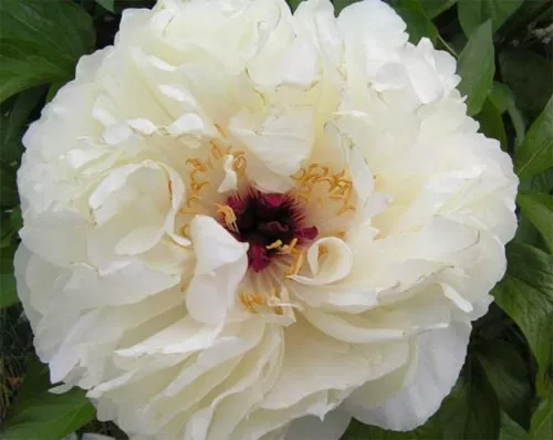 | Сноу Маунтін | Піони з кремовими суцвіттями великого діаметра, із скругленими пелюстками. Квітконоси міцні, але злегка схиляються. Сорт зимо- та посухостійкий. | ![]() |