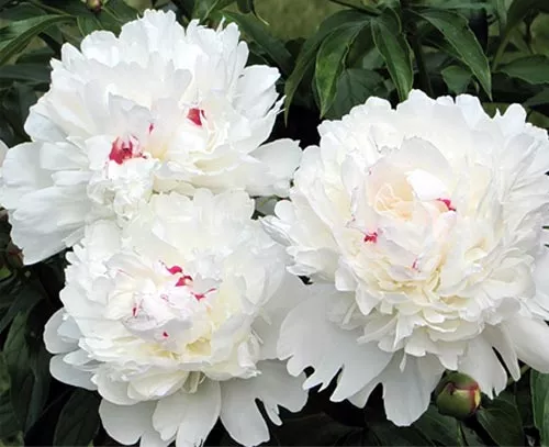 | Піон міс Америка | Компактні купи, заввишки 70-80 см. Квітки білого кольору, напівмахрового типу. Гофровані пелюстки формують тюльпаноподібні бутони діаметром 25 см. | ![]() |