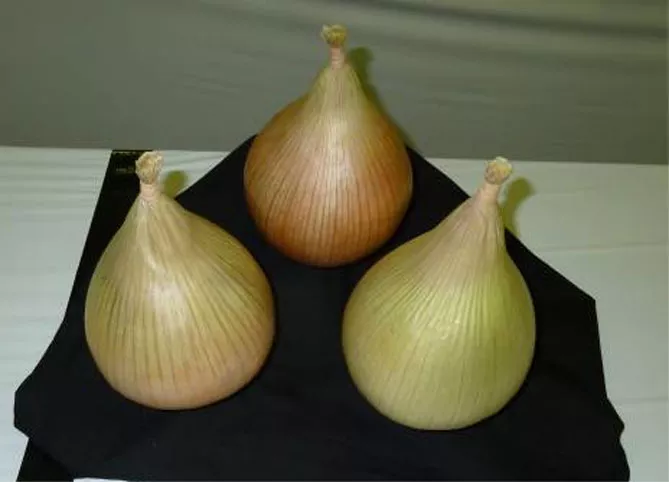 Цибулини Ексібішен дуже великі. Розмір ріпки залежить від технології вирощування цибулі: