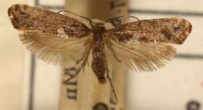 Шкідник – міль (Acrolepia assectella) завдовжки 6-8 мм. Гусениці відразу після вилуплення майже прозорі, в результаті інтенсивного харчування можуть стати зеленими. Самки третього покоління зимують у ямках, залишених у грунті, у тріщинах кори дерев, у складських приміщеннях. Навесні (у другій половині квітня), коли середня температура повітря перевищує 7 °С, вони нападають на посіви порею. Відкладання яєць починається при 15 °C на верхній стороні наймолодших листків цибулі. Метелики активні вночі, вдень ховаються.