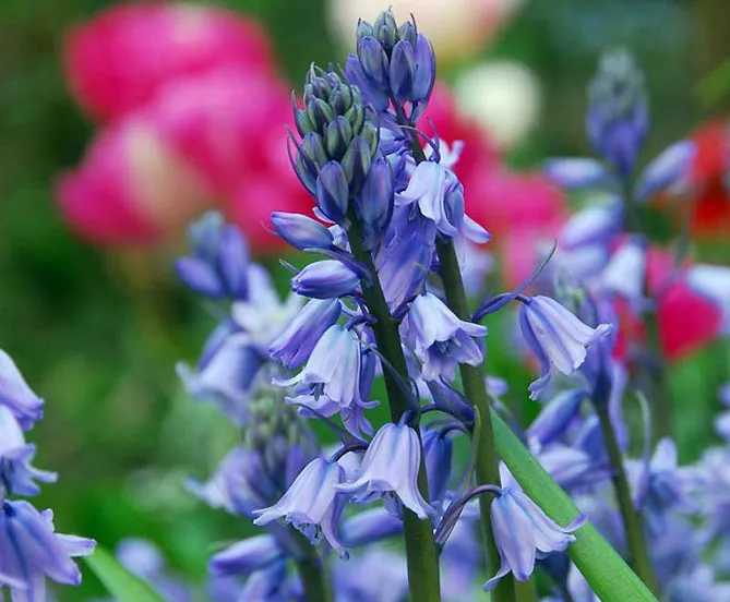 Пишна, морозостійка багаторічна рослина гіацинтоїдес іспанський з привабливими ароматними квітами виростає до 25-40 см. У нього гладкі блискучі листя. Висячі дзвоникуваті квітки інтенсивно-синього кольору з'являються у травні-червні. Чудово підходить для вирощування в альпінаріях, створення натуралістичних посадок під кронами дерев.