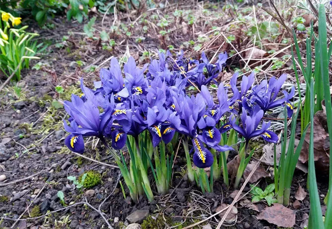 Цвіте сітчастий півники у березні-квітні. Висота квітки: 15 см. Положення віддає перевагу сонячному.