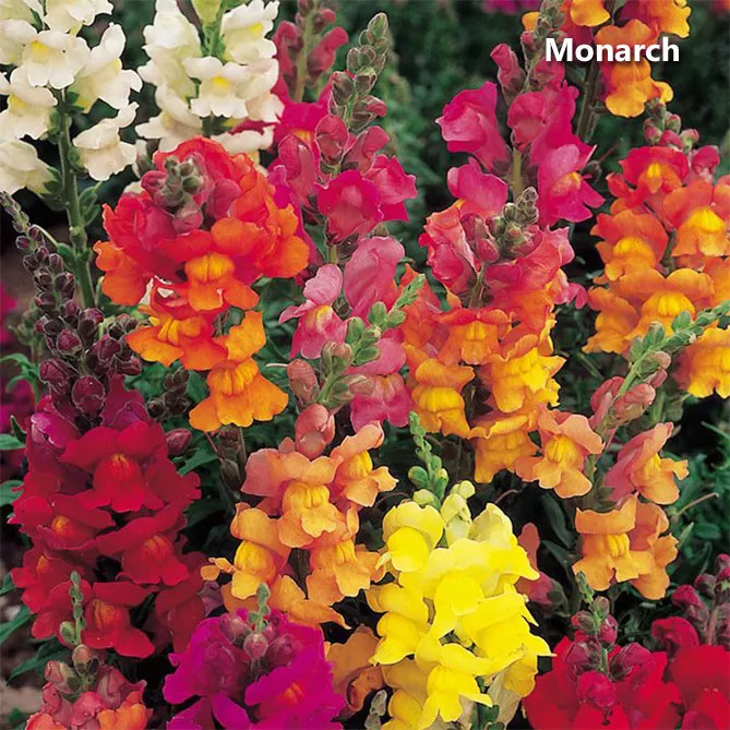 - Серія «Монарх» (Monarch) – з компактними листками, з яскравими квітами неправильної форми, надзвичайно стійкими до іржі.