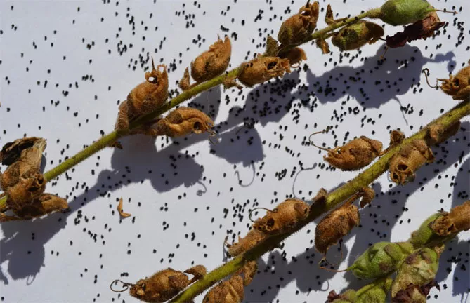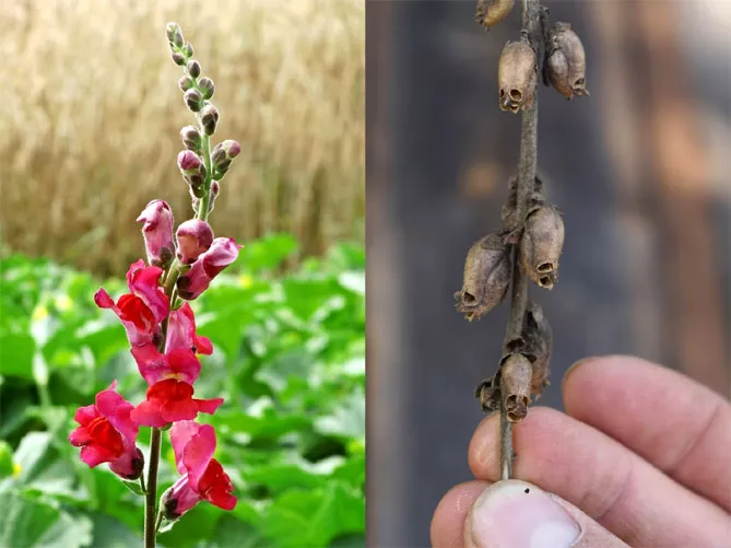 Фото. Насіння антирринуму. Коли квіти відцвітуть, суцвіття почнуть висихати, коробочки відкриються, щоб вивільнити зріле насіння.