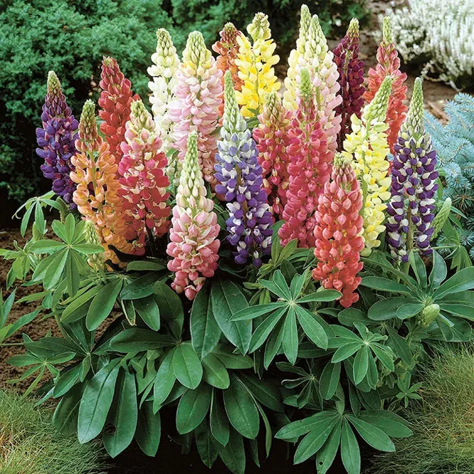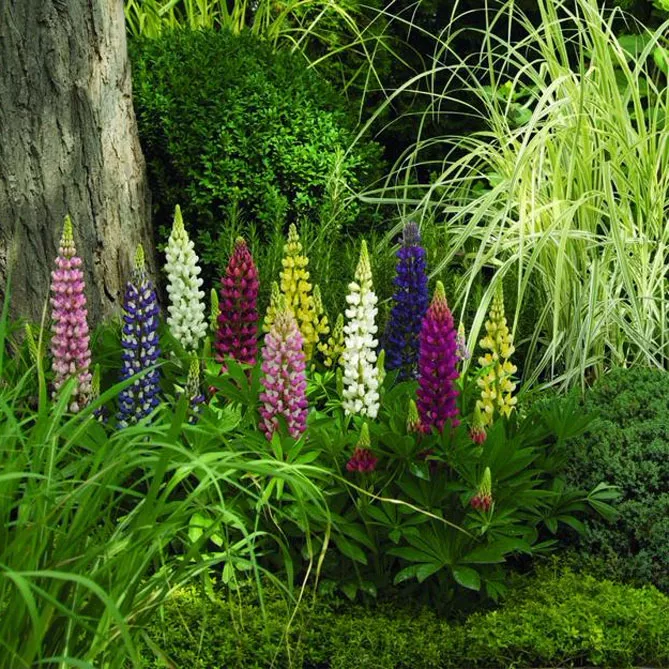 Типовий вид – багатолистий люпин, в залежності від сорту його квіти характеризуються цілою палітрою забарвлень, за винятком чорного і зеленого. Найкрасивішими є сорти з рожевими, абрикосовими та червоними квітами. Клумба квітучих люпинів має незабутній вигляд, а їх оригінальність порадує кожного любителя саду.