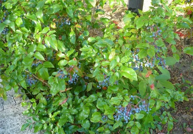 - Вічнозелений кущ з родини Барбарисових. Висота рослини – 100-150 см, ширина 60-100 см.